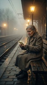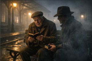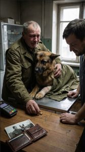 The man’s coat was worn. His boots were cracked. His hands trembled from age.